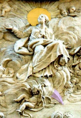 Este hexagrama representa esencialmente la fase previa a la interpenetración del Fuego con el Agua, o el Sol con la Luna, correspondiendo en la iconografía tradicional cristiana con la mujer del Apocalipsis, "Vestida de Sol y con la Luna bajo sus pies", como la misma Asunción de la Virgen María, que se muestra en la Basílica: