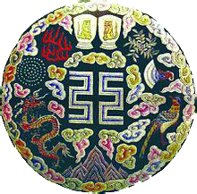Durante la dinastía Ming, este emblema lo llevaban los Emperadores en su túnica amarilla de ceremonia a la derecha del dragón, o bien alrededor del cuello, también lo llevaban, como podán ver mas adelante, duplicado y cerca de los pies.