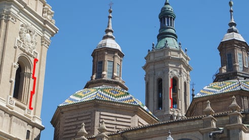 Como podremos apreciar, éste símbolo se repite en cada una de las caras de los 8 cimborrios octogonales de la Basílica del Pilar de Zaragoza. Así pues, aparece 64 veces.